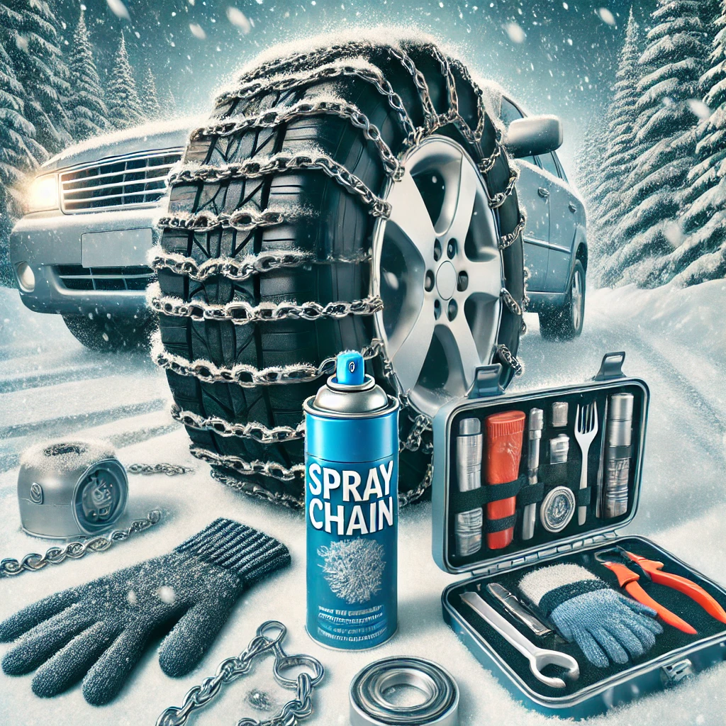 스프레이 체인은 스노우체인보다 훨씬 간편한 방법으로 차량의 타이어에 미끄럼 방지 성능을 추가하는 장비입니다. 그러나 효과의 지속 시간이나 강력한 성능에 있어 스노우체인보다는 다소 부족한 부분이 있을 수 있습니다.