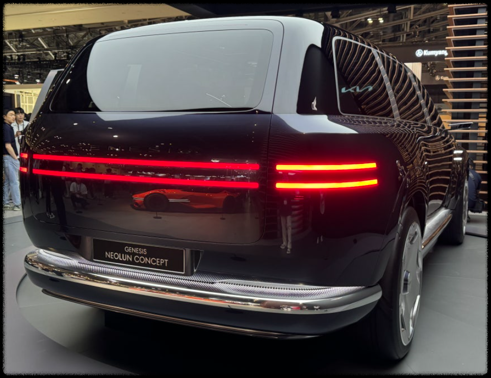2024 부산모터쇼에서 공개된 콘셉트카 ‘네오룬’을 기억하시나요? GV90은 이 컨셉트카의 디자인을 거의 그대로 반영할 것으로 알려졌어요. 실제 위장막 차량에서도 B필러가 없는 코치 도어 구조가 확인되면서 큰 충격을 줬죠.