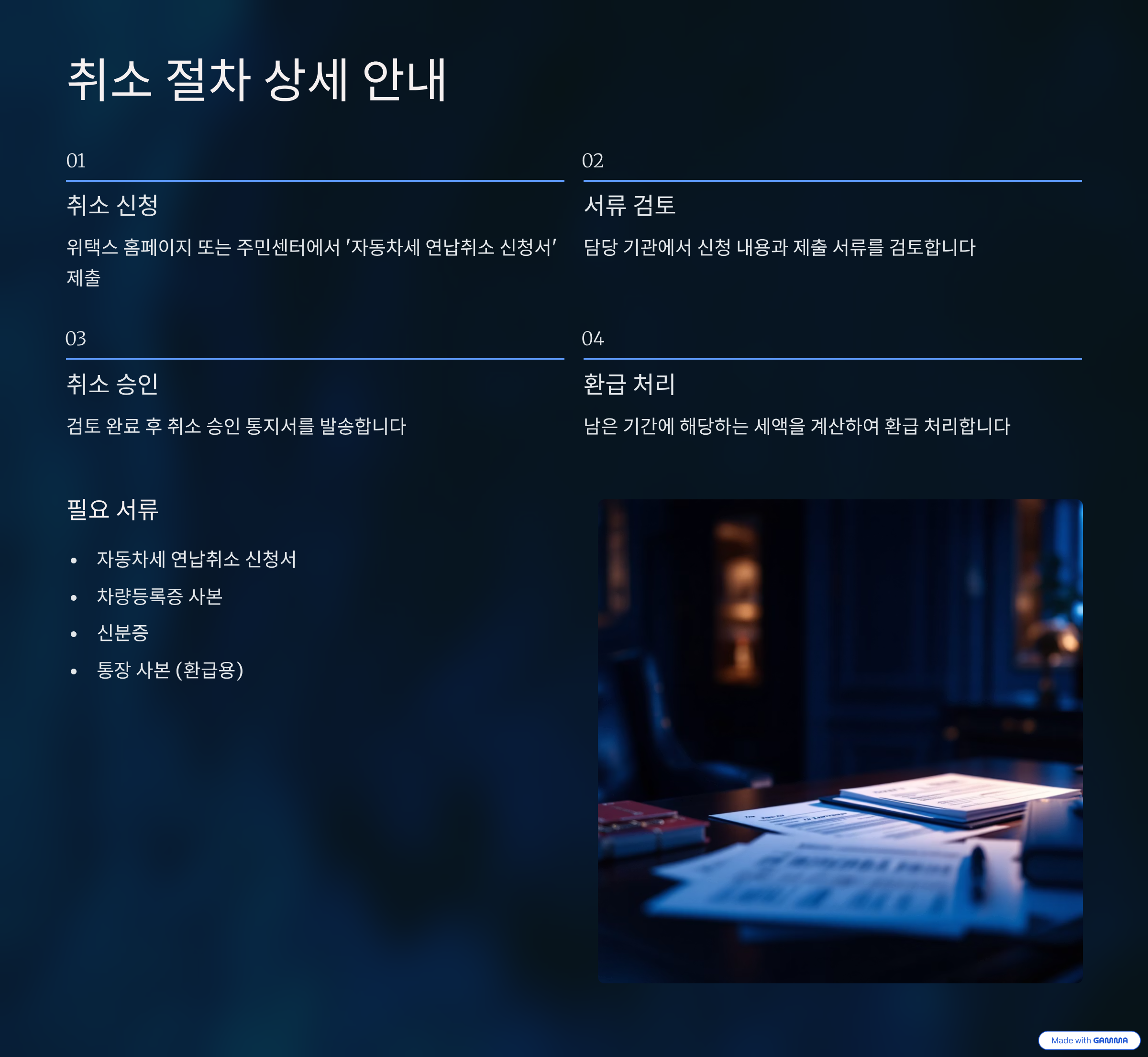 연납한 자동차세를 실제로 '취소'하고자 하는 경우, 단순한 버튼 하나로 끝나는 건 아니에요. 차량에 대한 상태 변화가 발생해야만 정식 취소와 환급 절차가 가능하거든요. 그럼 어떻게 해야 할까요?