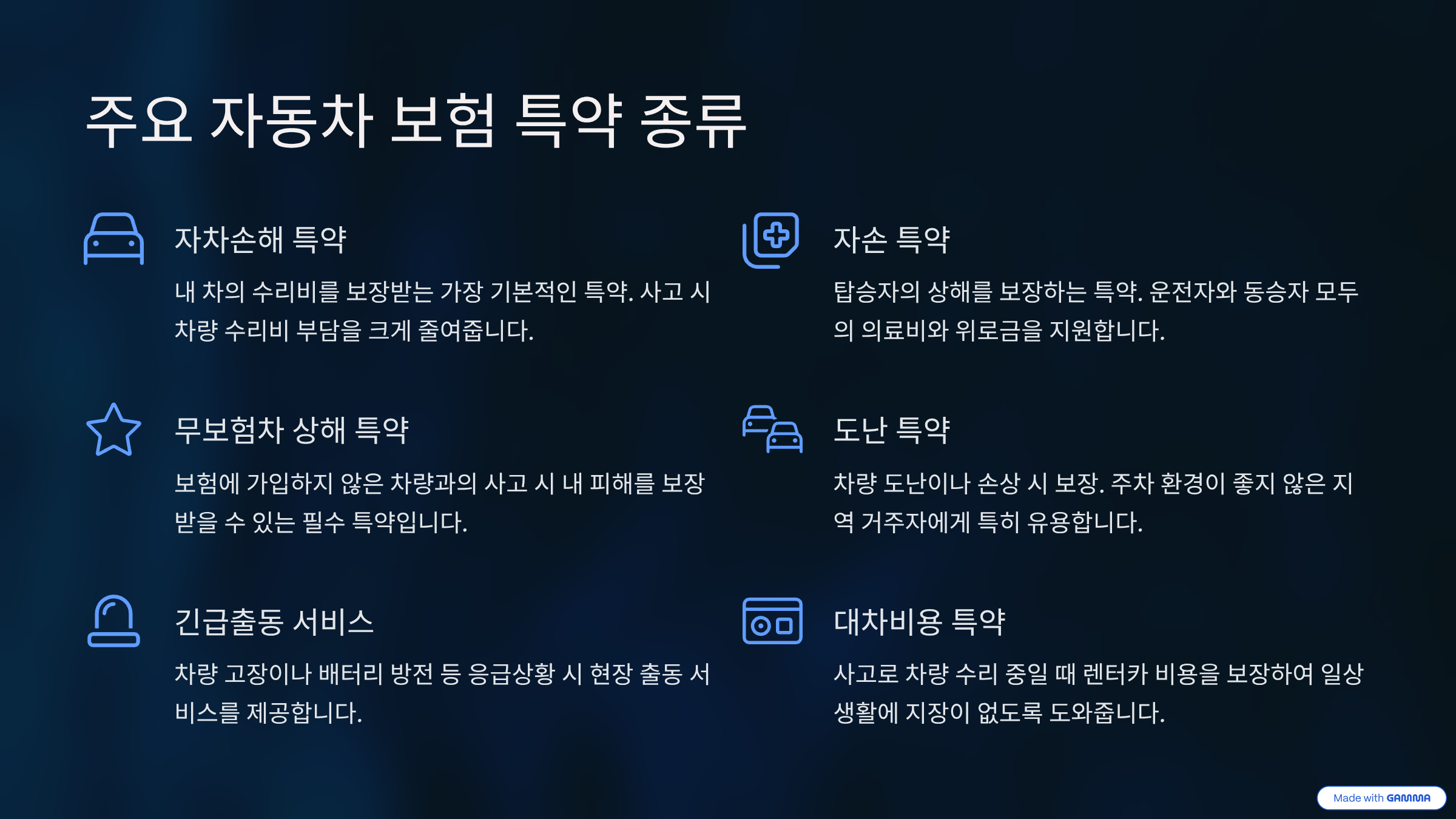 주요 자동차 보험 특약 종류 🚘