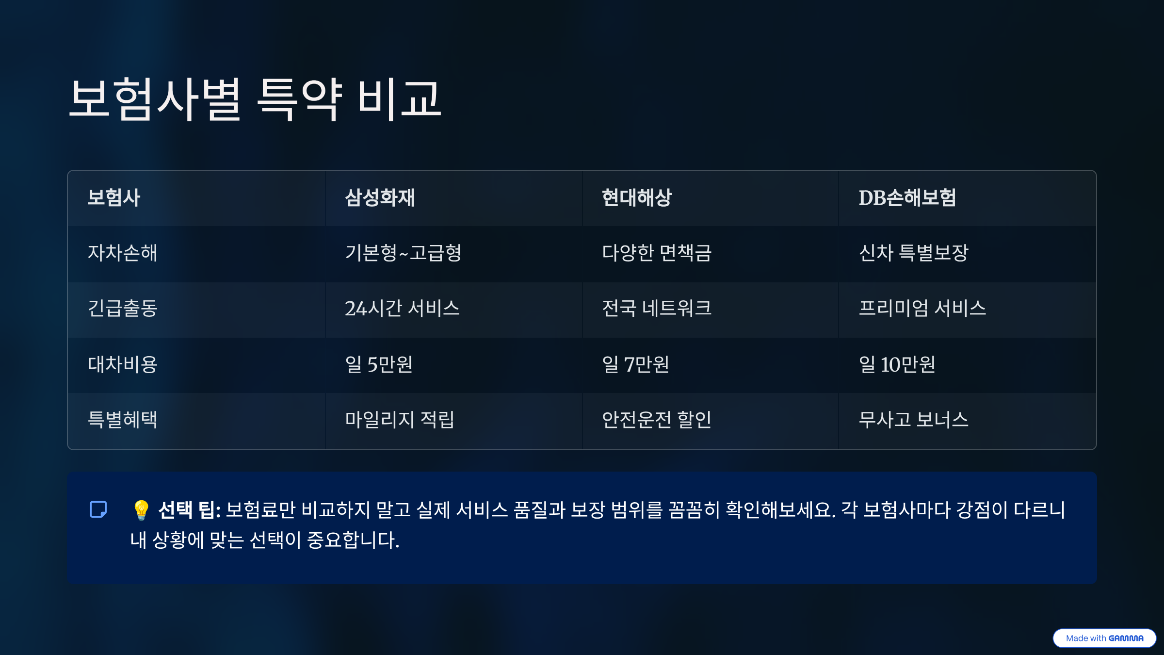 | 자동차보험 비교 | 최대 수십만 원 차이 | 보장 내용도 함께 비교 |