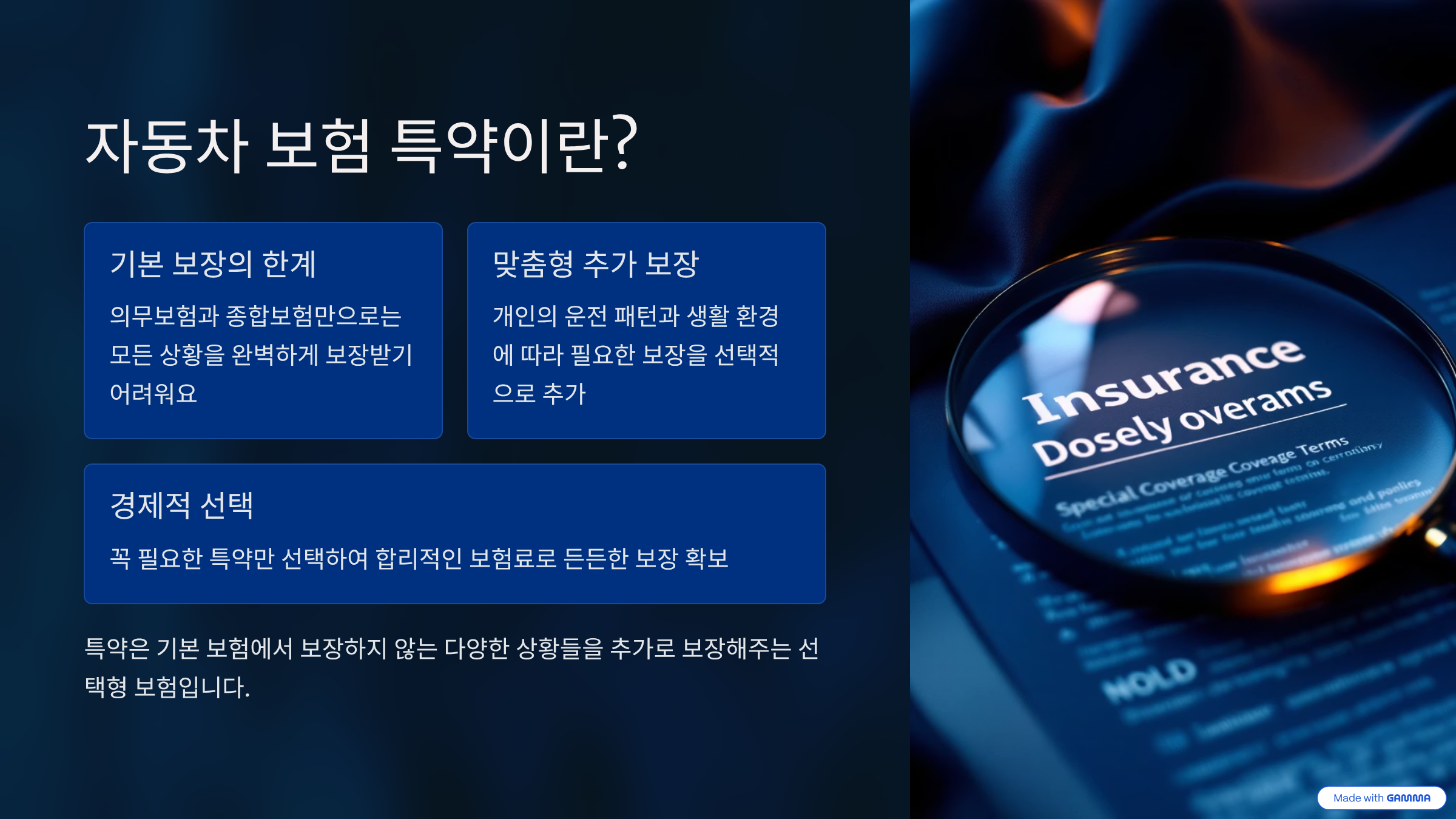 | 중요성 | 개인 상황에 따라 큰 보험료 차이 발생 |