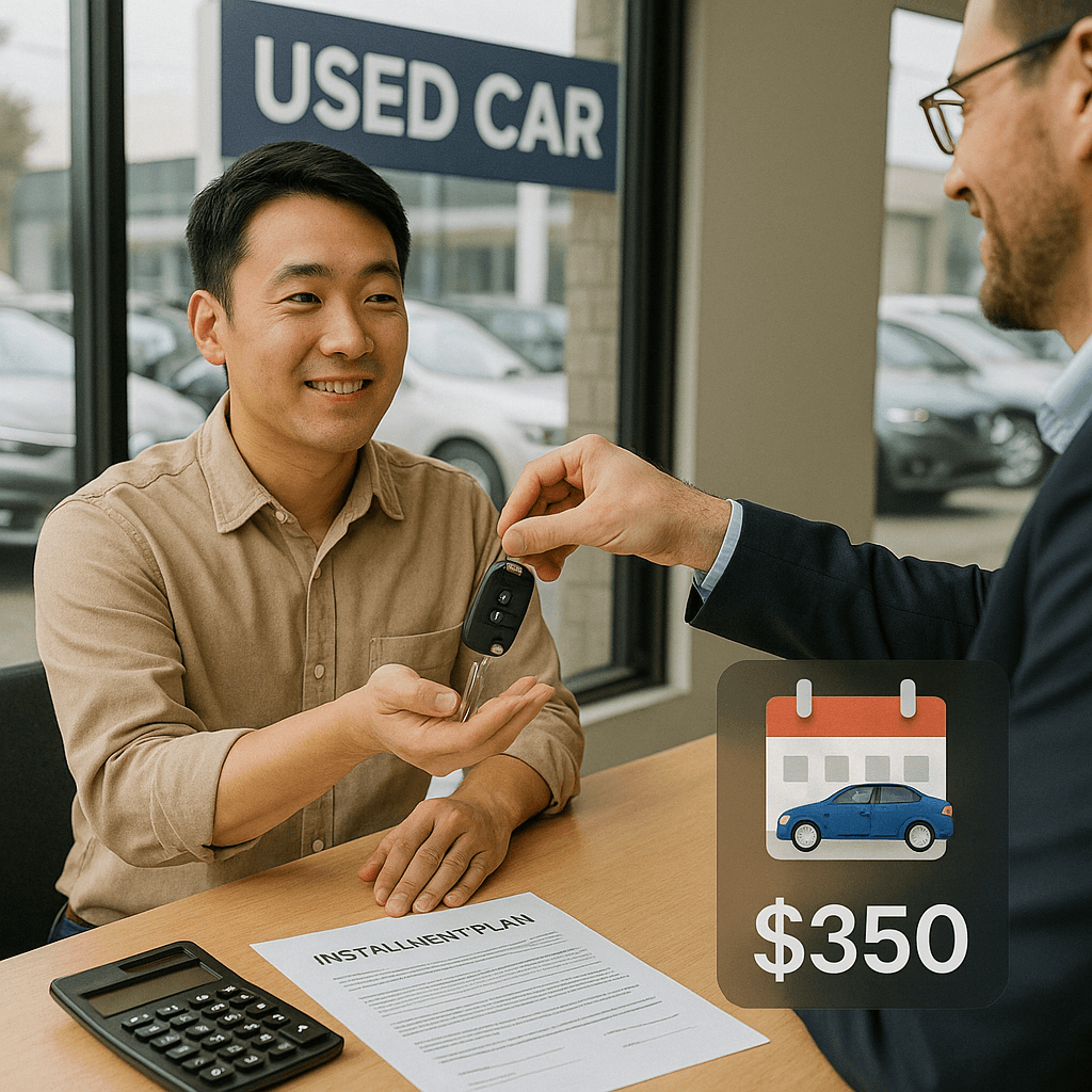먼저 원하는 차량을 선택하고 판매자(딜러)에게 할부로 구매하고 싶다고 말하면, 차량 가격과 함께 예상 월 납입금을 포함한 견적서를 받아볼 수 있어요. 이때 본인의 신용 상태와 소득 조건 등을 기준으로 맞춤형 조건이 제시돼요.